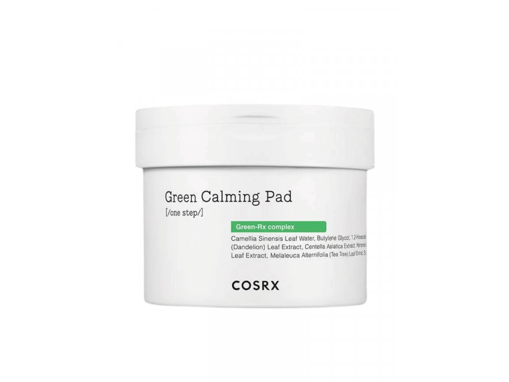 Zklidňující čistící tamponky COSRX One Step Green Hero určené pro citlivou pokožku s uklidňujícím účinkem s extraktem ze zeleného čaje a PHA kyselinou. Tamponky jemně čistí pokožku od nečistot a odlupují keratinizovanou vrstvu epidermu, hloubkově hydratují, zmírňují záněty a zarudnutí.
