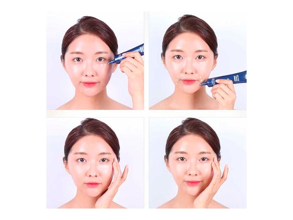 2. Nanes krém kolem očí, na nosoretní vrásky a oblast mezi obočím.
